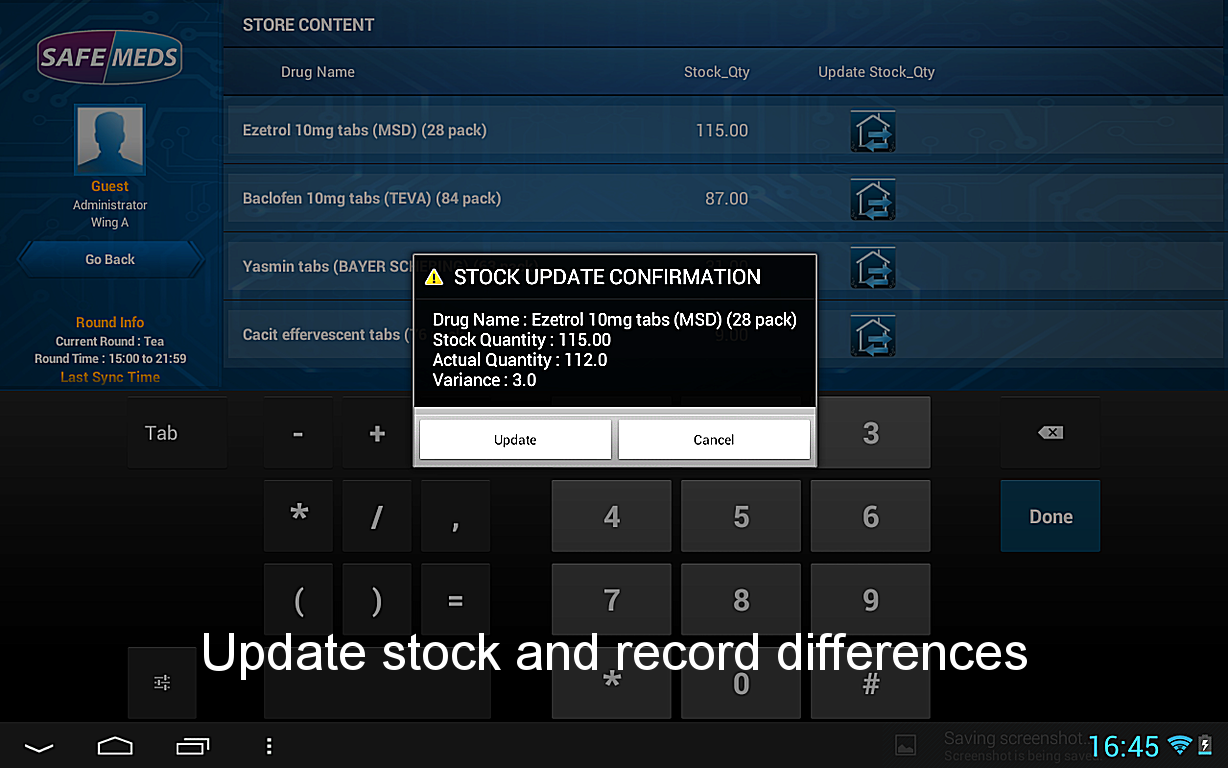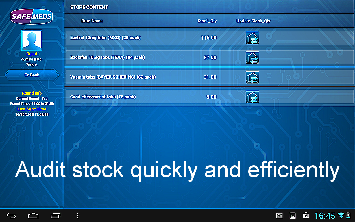 Checking stock can be a long and boring process in which the number of administrations, need to be added up and then taken away from the quantity booked in. This is a manual process that needs to be repeated for all drug entries on the MAR. Finally this calculation needs to be checked against the stock quantity.